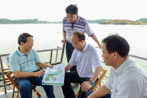 调研组一行乘船查看了西津湿地,听取了横县关于西津国家湿地公园(试点)建设的情况汇报,副市长肖志钢对横县开展西津国家湿地公园(试点)建设各项筹备工作给予了充分肯定,强调建设西津湿地公园是一项功在当代,利在千秋的民心工程,可以提高横县的知名度,提升横县旅游品位和价值,为促进横县经济社会可持续发展提供有力的基础支撑,希望横县在一如既往的守护好这一湖清水的基础上,准确定位,突出生态优先,以保护为主,在保护中合理开发利用,按照总体规划加快西津湿地公园(试点)建设步伐,实现湿地资源保护、宣教和合理利用三者共融;同时要加快公园内外交通的对接,加快休闲配套设施的建设,使公园成为市民休闲的好去处,为建设绿城南宁再添一张有分量的"生态名片",为生态文明建设做出贡献。
